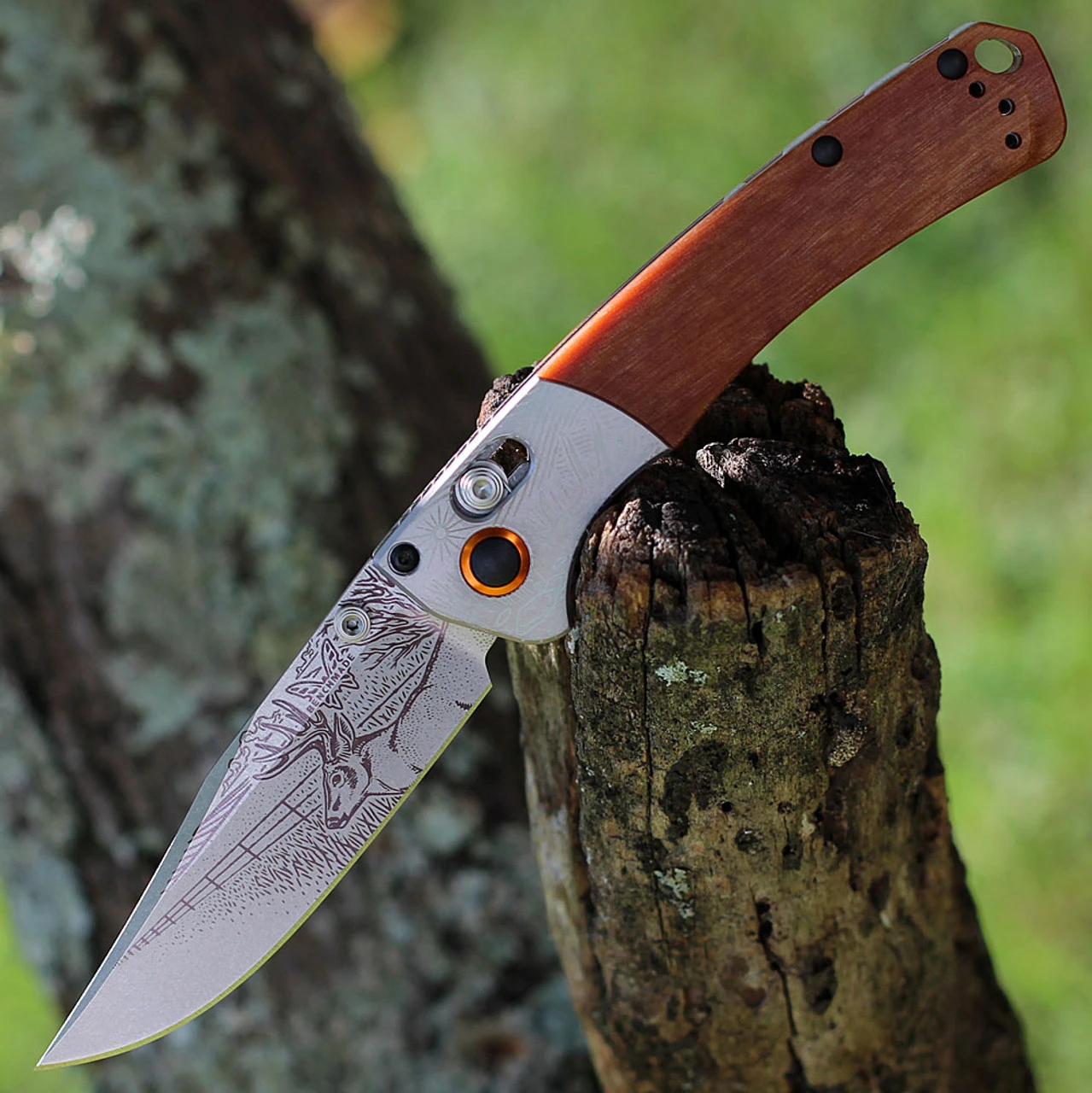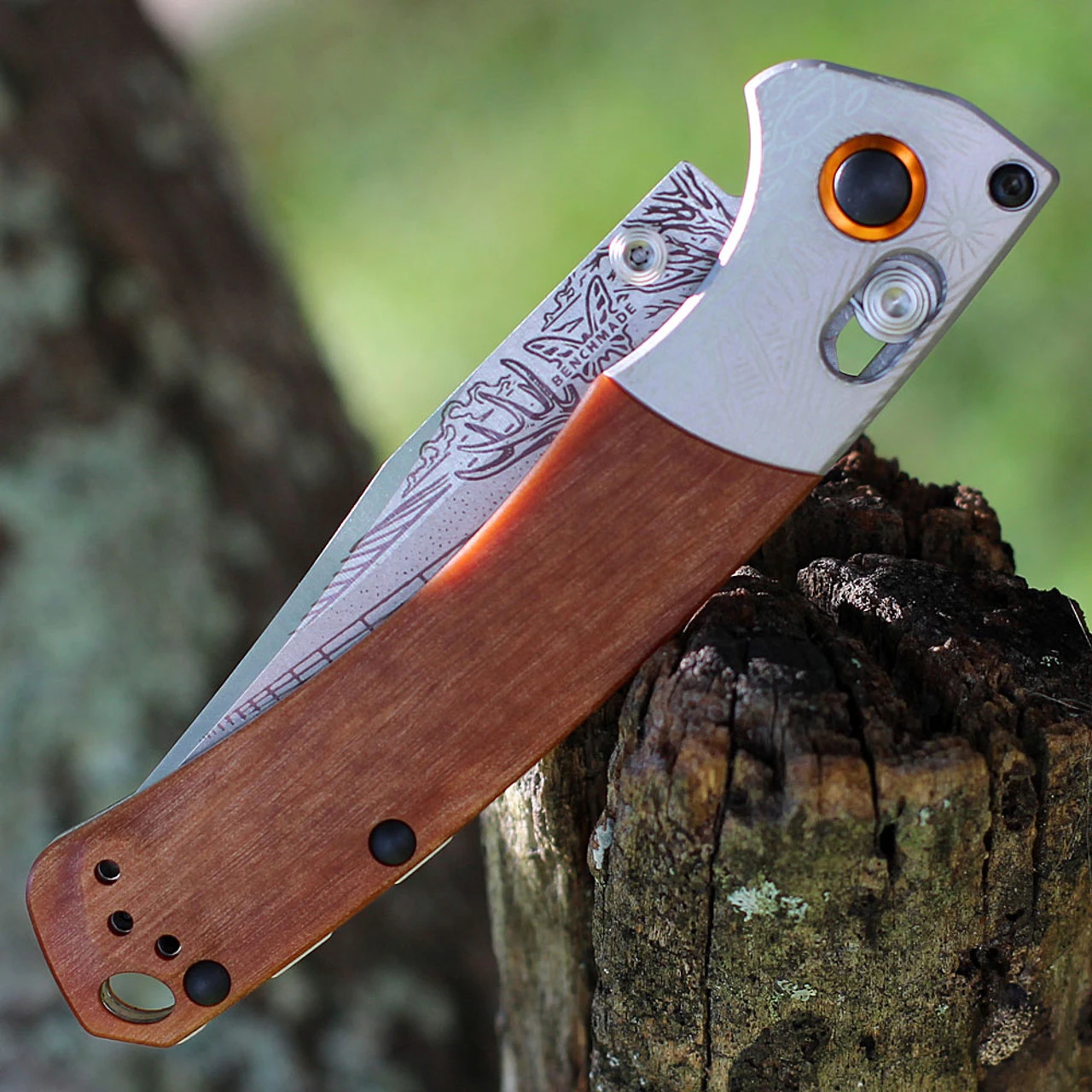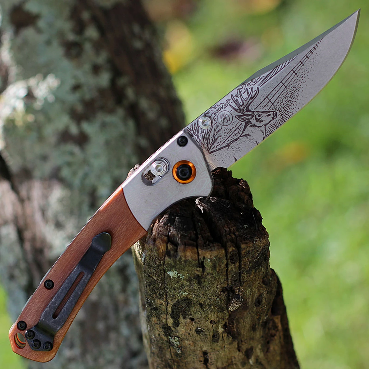 Benchmade 15085 Limited Edition Artist Series – Whitetail Deer (15085-2202) 3.40″ CPM-S30V Satin Clip Point Embellished Blade, Wood Handle
