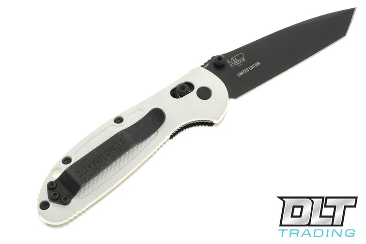 Another addition to our line of exclusive Benchmade products, this Mini Griptilian is perfectly suited to any EDC task you face. Thanks to the extreme edge retention of S90V, the DLT exclusive Mini Griptilian will keep cutting and cutting whether youre on Hoth or Tatooine. The white grivory handle has a great, non-slip texture for comfortable long term use, and matches perfectly the standard issue Stormtrooper armor for duty use. Dont let the rebels win, get yours today at DLT Trading!