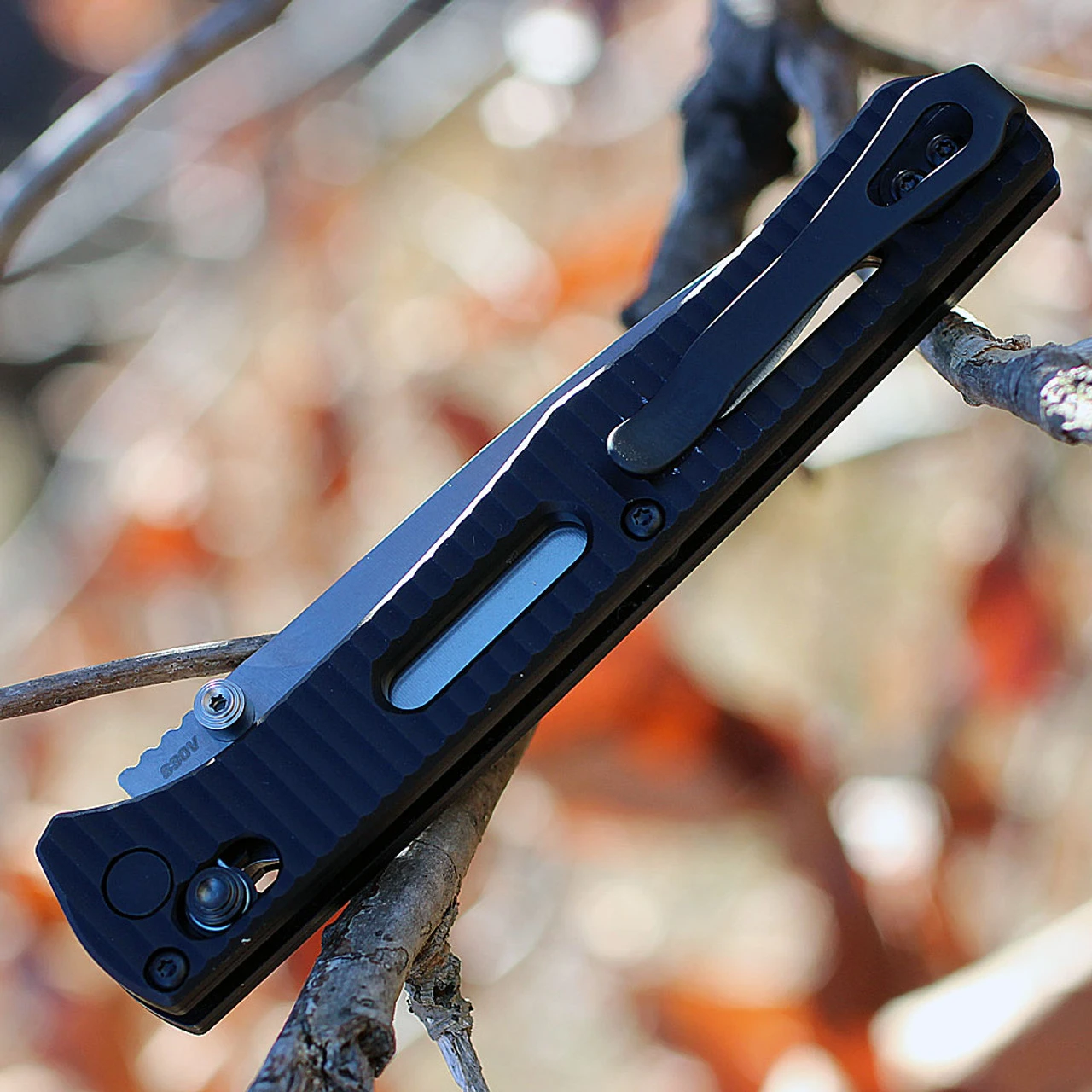 - CPM-S30V spear point blade offers superb cutting performance and piercing capability.