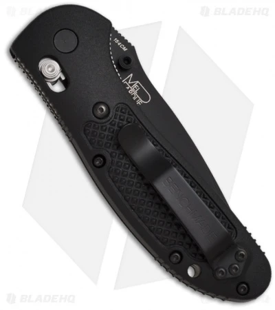 The Benchmade Griptilian 553SBK knife features textured black Valox handles, which are very strong and lightweight. Double 420J stainless liners add strength to the knife handle. The AXIS lock mechanism makes the knife easy to open and easy to close for right and left handers. The BK1 black finished tanto blade is stainless steel with a partially serrated edge and dual thumb studs. The pocket clip can be reversed for right or left handed use. Mel Pardue design.