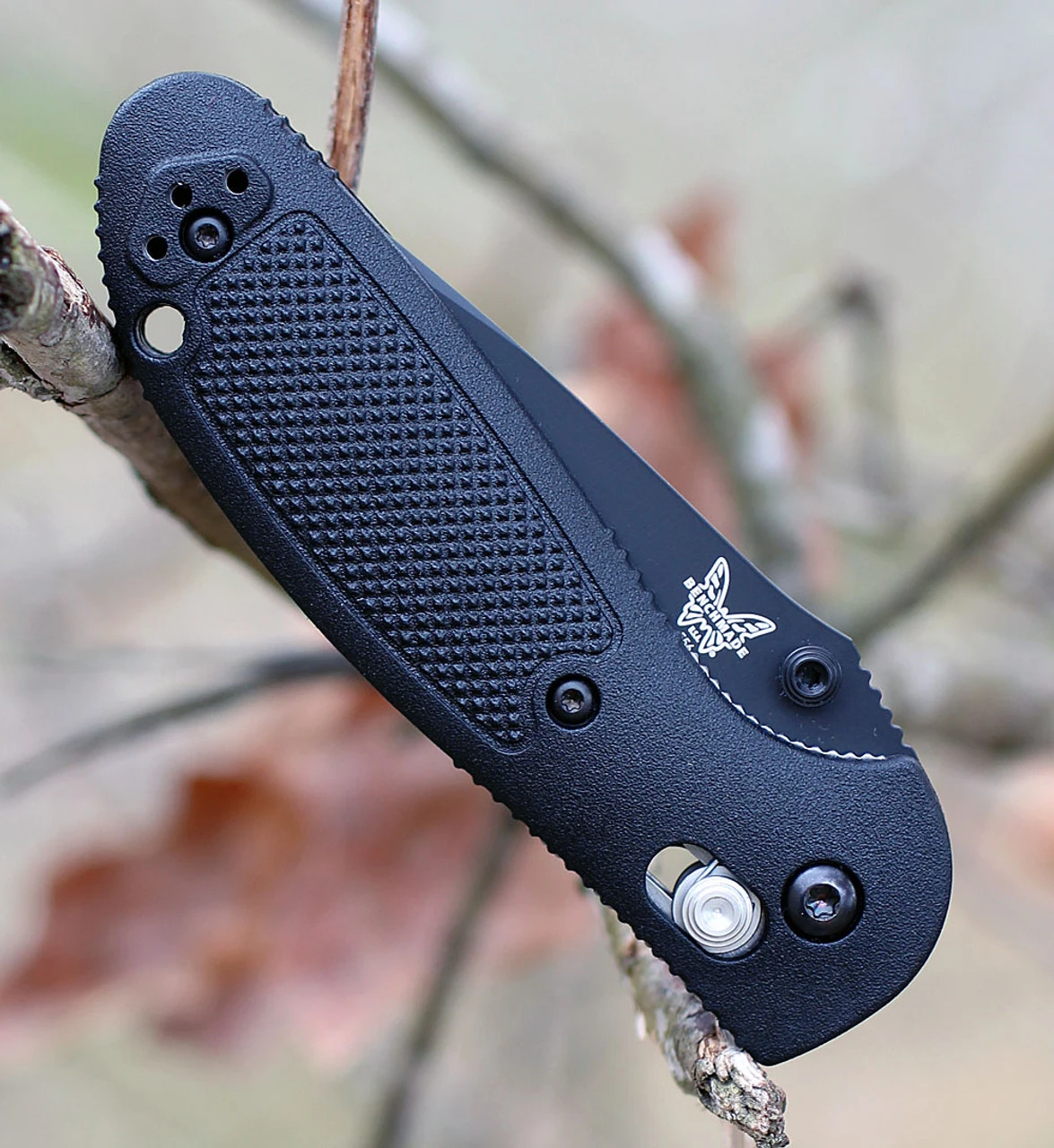 The Benchmade Griptilian is one of Benchmades Classics that has been around for years. The Griptilian is ranked one of the overall best EDC Knife that is in the knife industry. The Griptilian is offered in a variety of combinations with different blade steels and handle materials, you are sure to find something to best fit you needs. The Griptilian is designed by custom knife make Mel Pardue. Mel Pardue has been grinding Sparks, Making Knives and creating knives for 25 year and still counting. The Pardue Designs offer great utility to the everyday knife user while at the same time presenting an outstanding design and performance.If you are worried about the size, there are two different sizes to choose from. The Griptilian overall length is 8.07in. and the Mini Griptilian length is 6.78in. Whether you have large or small hands, either size of the Griptilian will fit your hand. Benchmade Griptilians are made with S30V stainless steel, American-made steel. The Benchmade Griptilian also has the award winning Axis Lock. Benchmade Knives are known for their design of the Axis Lock, it is functionally smooth and easy to operate.